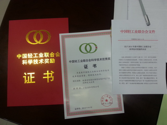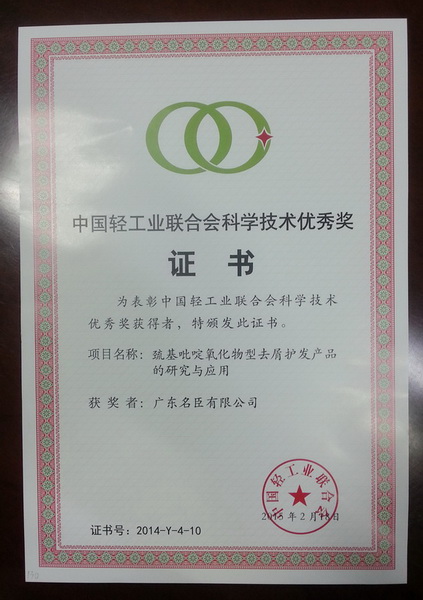 | 4月2日,中国轻工业联合会在石家庄举行2014年度中国轻工业联合会科学技术奖颁奖仪式。会上,名臣健康用品股份有限公司又一科研项目“巯基吡啶氧化物型去屑护发产品的研究与应用”获中国轻工业联合会科学技术优秀奖。公司技术开发部经理、研发工程师、项目负责人张太军代表公司参加了颁奖仪式。 名臣股份创办以来,始终坚持以市场为导向,以技术创新为动力,致力开展技术创新、科研攻坚,培育自有知识产权,打造名臣股份产品的卓越品质,满足消费者不断提升的消费诉求,推动公司业务的持续、稳步、健康发展。 公司重视优秀技术人才的引进、培养和使用,重视科研投入和实验室等科研平台的建设,重视国内和国际科研前沿的技术交流与合作,为公司科研人才提供挥洒才干的平台和广阔的职业发展空间,为公司科研创新、持续发展提供强有力的人才支持。 2014年度,名臣健康用品股份有限公司还获得汕头市人民政府科学技术三等奖1项,广东省轻工业协会二等奖和三等奖各1项。公司“去屑护发素系列产品”等3个系列产品获得广东省高新技术企业协会高新技术产品认定。