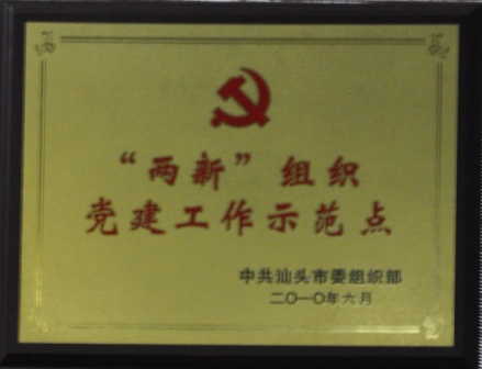 公司党支部是汕头市委组织部“两新”组织党建工作示范点