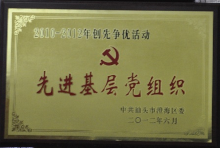 公司党支部在中共汕头市澄海区委组织的创先争优活动中被评为“先进基层党组织”