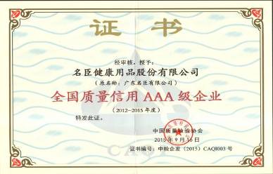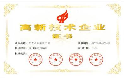 名臣企业荣誉 全国质量信用AAA级企业(2012年-2015年度) 广东省高新技术企业 广东省制造业100强(2014年-2015年) 广东省民营企业100强(2014年-2015年) 汕头市澄海区纳税大户