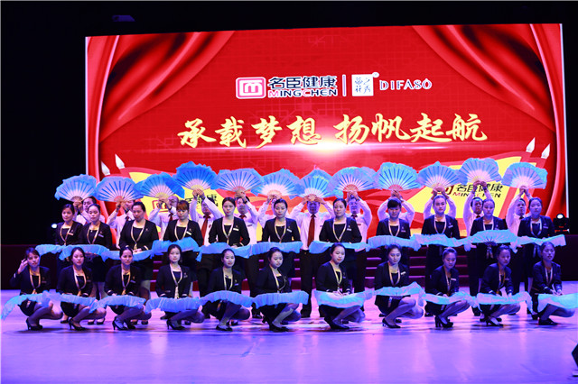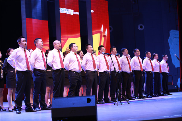 公司营销精英团队在会上唱响企业歌《青春派对》
