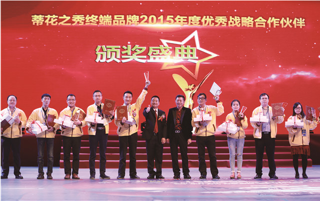 公司董事长陈勤发与受表彰的营销精英合影