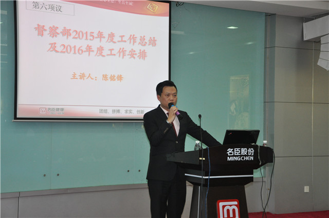 公司市场督察部经理陈铭锋在会上作报告