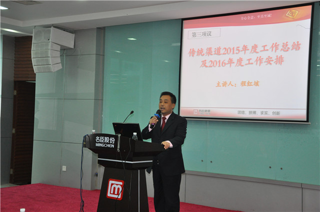 公司传统渠道营销中心总监程红垓在会上作报告