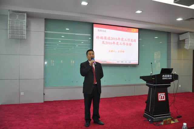 公司终端渠道营销中心总监王宇明在会上作报告