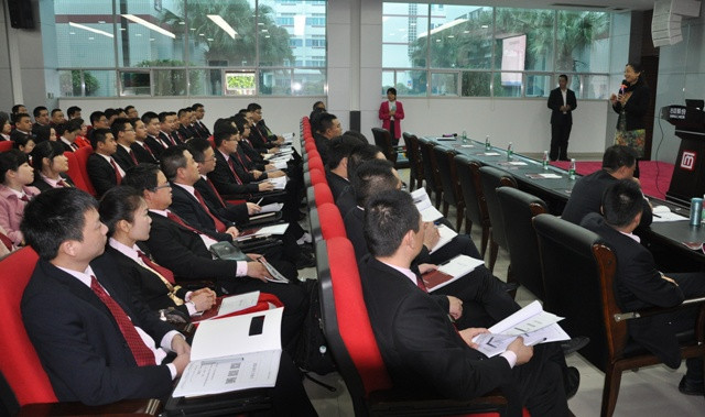 公司董事长陈勤发为受表彰的年度营销精英颁发荣誉证书 2月19至20日,公司组织各渠道营销中心营销精英参加了公司为期2天的管理培训,由英盛企业管理顾问有限公司资深培训讲师吕憬芊量身定制课程,做《团队执行力提升》的管理培训,讲授了建立企业执行力要素,以业绩为导向的绩效管理,打造销售团队卓越执行力和构建卓越执行力的企业文化等课程。