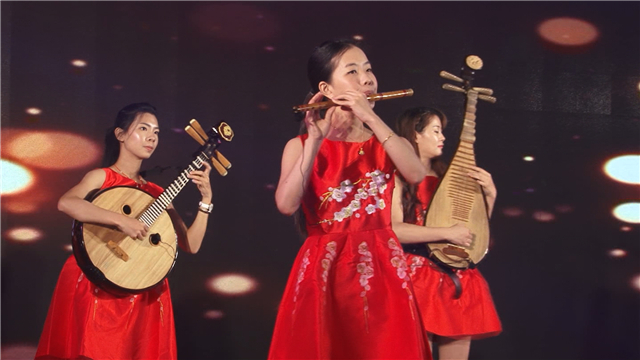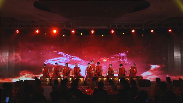 员工代表表演名臣之歌 接下来还有《潮州大锣鼓》、人屏互动表演、歌舞表演、魔术、女子乐坊的精彩演出。