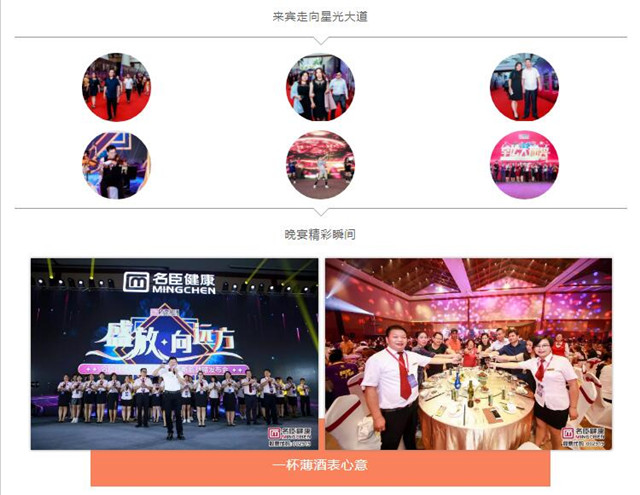 晚宴环节,来宾们纷纷盛装亮相,走向象征尊贵荣耀的星光大道,在百米红毯展现名臣健康人的魅力风采,分享来自名臣健康的成功与喜悦。美酒佳肴,劲歌热舞,缤纷抽奖和丰盛奖品,让来宾们高兴不已。会议在大合唱《明天会更好》的歌声中完美落幕。 名臣健康,以匠心品质致敬美丽中国梦,以坚定信心铸造中国民族日化洗护终端第一品牌,以盛放之姿,执梦远行,迈向新征程,续写新篇章! |