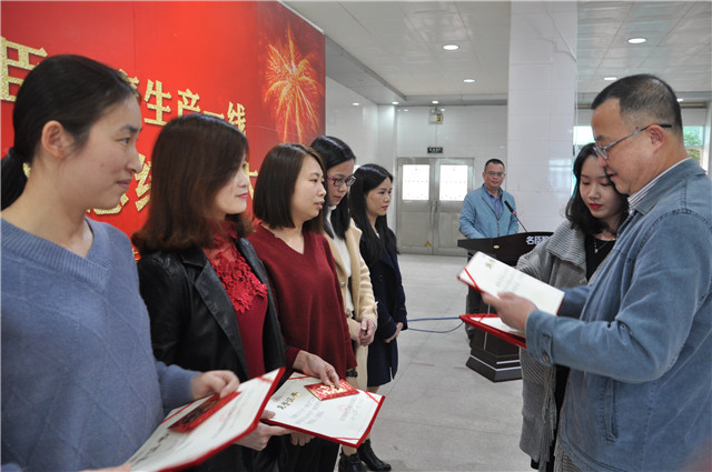 会议由公司人力资源部经理张翀主持,生产总监姚岳森在会上做2018年生产一线工作总结,公司副总经理林典希在会上讲了话,代表公司对生产一线2018年在保障生产任务完成、保障产品质量、保障市场销售发货、保障生产安全等方面所做的不懈努力和取得的工作成效予以肯定,对新年生产一线工作提出希望和要求。会上,公司领导、生产总监和生产系统各部门经理为获奖的先进班组和优秀员工颁发了荣誉证书和奖金。