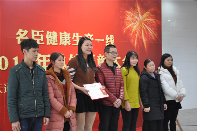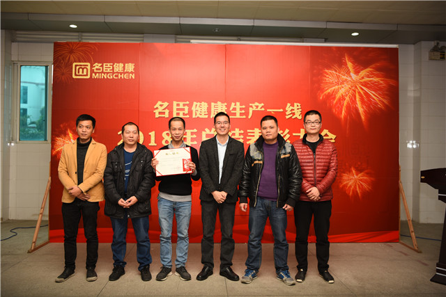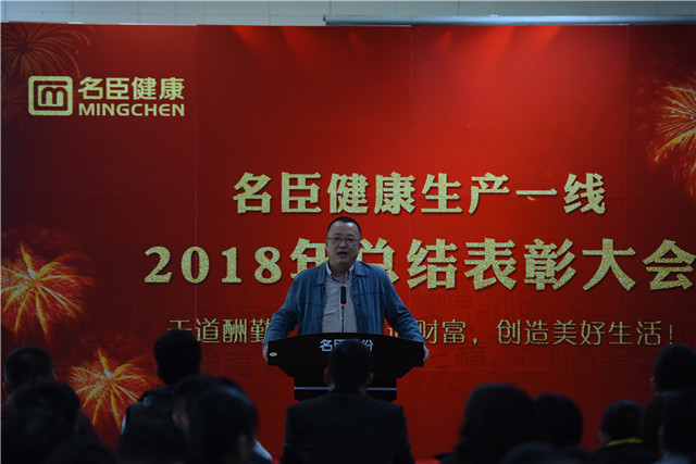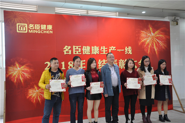| 1月30日下午,名臣健康在公司会议中心召开2018生产一线总结表彰大会,回顾和总结生产一线过去一年的工作,展望和部署新年工作,表彰在过去一年生产和工作中表现突岀的优秀员工,以及在公司质量管理中成绩突出的先进班组和先进个人、在技术改造与创新中成绩优秀的先进班组,充分体现了公司对生产一线的高度重视。