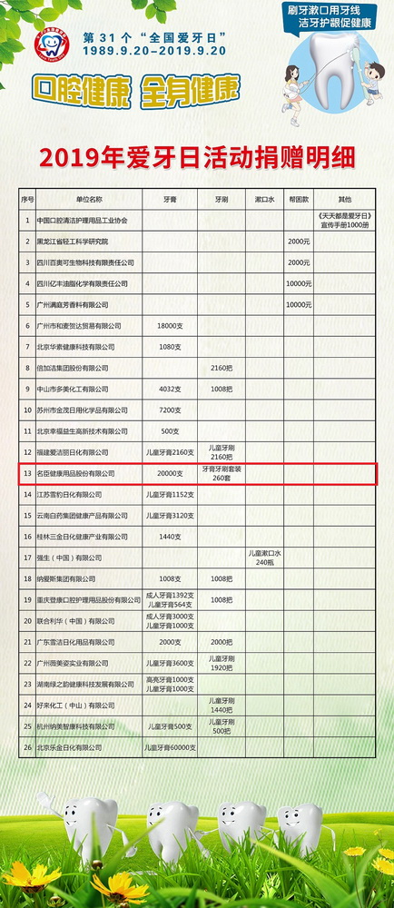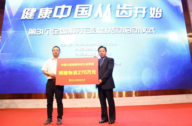 本次爱牙日公益活动,中国口腔健康科普公益联盟单位共向湖南省慈善总会捐赠价值270万元的口腔护理用品。