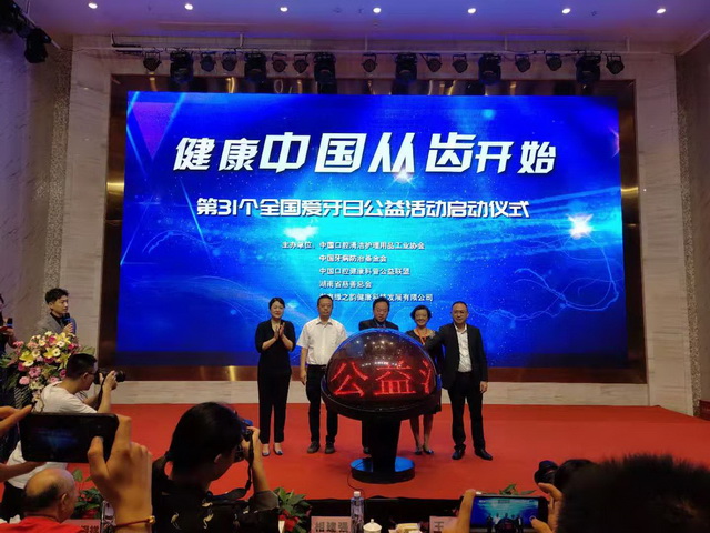 | 为提高群众口腔健康意识,营造有利于口腔健康的良好社会氛围,9月20日,由中国口腔清洁护理用品工业协会、中国牙病防治基金会、中国口腔健康科普公益联盟、湖南省慈善总会、湖南绿之韵健康科技发展有限公司及中国口腔健康科普公益联盟成员单位共同主办的“健康中国•从齿开始——第31个全国爱牙日公益活动启动仪式”在湖南长沙隆重举行。